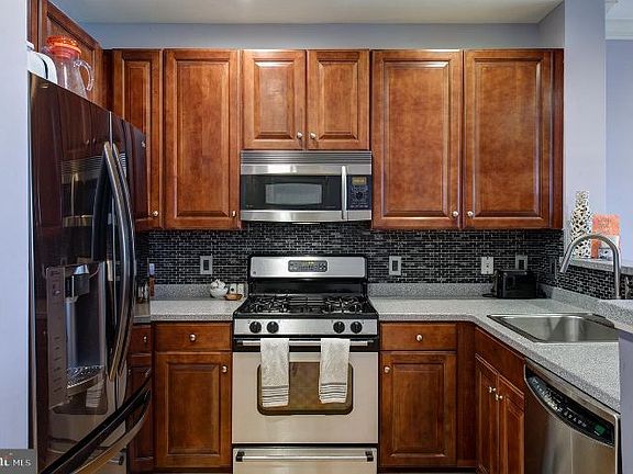 You'll be pleasantly surprised stepping into this delightful condo with 9 ft. ceilings. It feels spacious! You'll find 3" oak floors in public areas, recessed lighting, cordless window shades, and 2 ceiling fans. Cooks will enjoy the great kitchen with dark 42" cabinets, gas cooking, corian countertops, stainless steel appliances, and mosaic glass backsplash. The built-in desk area with matching dark cabinets is perfect for working from home. The bedroom has 2 closets - one a walk in with organizer. This unit has a climate controlled storage room and don't forget the 2 garage parking spaces. Lots of updates too - Windows replaced 2012, HVAC and HWH 2015, Bedroom Closet Organizer 2015, and Refrigerator 2018. Market St at Town Center features secure entry, concierge, business center, party room, fitness center, and pool. Walk to everything Reston Town Center has to offer plus the library, hospital, and new Metro stop due to open 2022. Floorplan and building layouts are in Documents section. Don't miss this one!