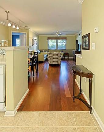 Fantastic 2 bedroom, 2 bath, 2 garage space and a large storage unit in this Reston Town Center condo. 1150 square feet with beautiful wide planked hardwood floors.