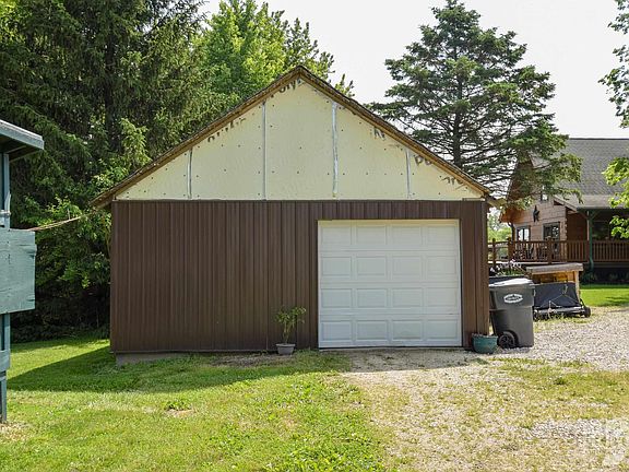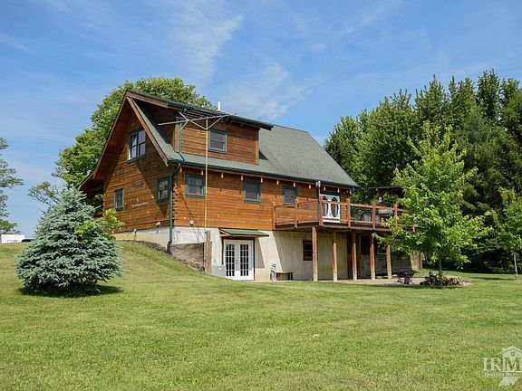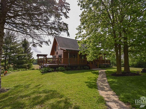 Beautiful log home located on 21.50 acres! As you walk in, you're greeted by the open concept living room and kitchen with beautiful woodwork and tall ceiling. The kitchen includes a large island and all kitchen appliances remain including washer and dryer. The master suite is on the main level with a master bath with a spacious tiled shower. Laundry room and half bath also on the main floor. Upstairs includes another bedroom or loft with a full bathroom. Downstairs features a full walkout basement with another large bedroom. Outside includes a covered front porch and wraparound deck - great for entertaining! Beautiful view from the back deck overlooking the approximate 14 acres of tillable farm ground that's currently rented. 1.5 car detached garage, multiple outbuildings, chicken coup, and a creek in back of the property. Conveniently located near the Muncie Reservoir! You don't want to miss out on this beautiful scenery, wildlife, and seclusion!