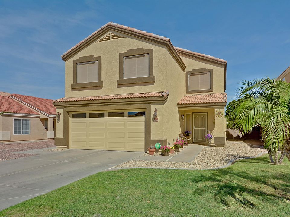 OPEN the door to your DREAM HOME. Check out the 18 inch tile in this 4 bedroom, 2.5 bath. Walk around the corner to a Beautifully UPDATED kitchen with GRANITE counter tops, and a Deep under-mounted Sink. Enjoy energy saving features with all toilets being dual-savers, sun-shades on all windows, newer blinds and all Lighting fixtures updated. Take a stroll upstairs, where you can sit in the loft and hangout. The Large bedrooms have plenty of room to move around, all with newer carpet. The master bedroom has walk-in closet with lots of shelving. Go & Hangout in the LARGE grassed backyard, store your tools in the shed, along side the covered patio.K-8th grade school in the neighborhood. Only minutes away from many VALLEY ATTRACTIONS, great freeway access, close to Stores, & READY TO MOVE IN. There has been many upgrades to this home some of things are.. Tile flooring 2014 Carpet 2015 Kitchen all updated with Granite counter tops and an under-mounted granite sink in 2014, along with all bathroom counter tops and front window sill matching the Granite in the Kitchen. Brushed nickel hardware places on all doors and faucets. All lighting fixtures updated 2014 New blinds thought out home 2014 All toilets are dual saving, changed in 2013. All rooms have newer ceiling fans. Interior was recently painted 2016 Exterior was painted in 2015 Garage door and opener replaced in 2015 AC had compressor and fan replaced in 2011. Out Shed is a Rubbermaid approx 7*7, this will stay. Half bath downstairs new vanity.