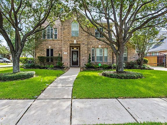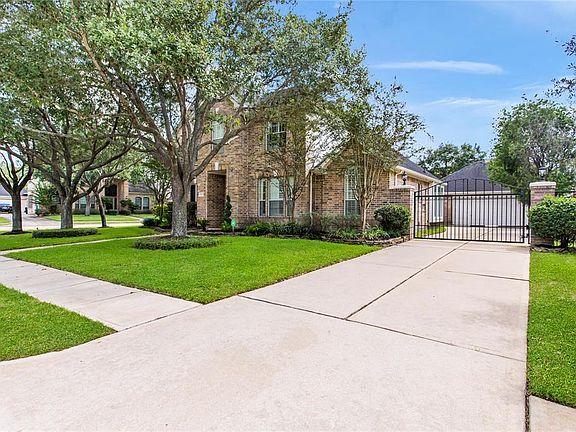 NEVER FLOODED - Nestled on a large corner lot in a quiet cul-de-sac in one of Houston's most desired neighborhoods of Lakes on Eldridge North, a private gated community with more than 25 acres of green park space, lakes and nature! This beautiful two-story home offers an abundance of natural light, hardwood floors, soaring ceilings, recessed lighting, plantation shutters, a light and bright kitchen with granite countertops, master suite with ensuite bath and walk-in closet, and a backyard oasis with a sparkling pool and waterfall, separate seating area, and outdoor kitchen! All appliances, including the refrigerator, washer and dryer stay with home. Enjoy the serene outdoor living or take a quick five-minute walk to the state-of-the-art community clubhouse and recreation center, with a junior Olympic-sized swimming pool, fitness center, volleyball courts, and tennis courts. Pool maintenance is included in lease!
