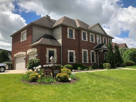 Beautiful brick classical 2 story with an amazing amount of space for the money. You will appreciate the elegant foyer (stunning first impression) with thick archways that lead into the formal living room and dining room. There is a very impressive open flow to the main level that offers plenty of space for entertaining family and friends. The multi-windowed back of the house with bayed areas in the Kitchen and Breakfast nook allow for plenty of sunlight and a great view. The kitchen features newer granite countertops and a unique open feel for the chef in the family and a large walk-in pantry. Floor to ceiling windows drape either side of the grand fireplace in the great room. Home fully wired with sound system and plumbed for central vacuum system. Master bedroom boasts suite style configuration with accompanying den, marble surround fireplace, & sitting area. Master Bath is designed w/ 11x12 walk-in closet, walk-in dual head shower, and jet tub. Basement is ready for more entertaining with kitchenette and bar set-up. Full bath, and plenty of room for pool or poker table. Good sized deck and custom stamped concrete on patio & entry way round out the full package on this executive style home.