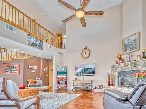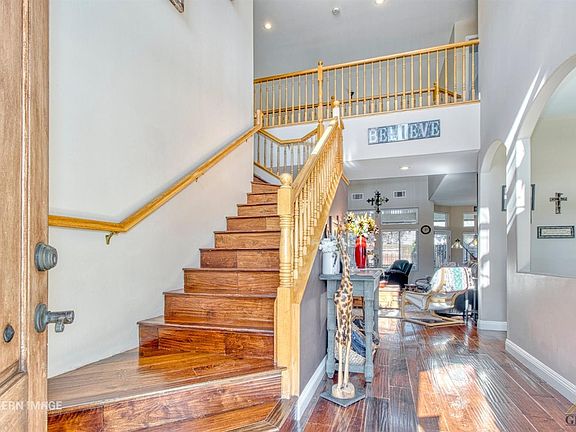 Custom home nestled in the NE foothill community of Vista Finestra offers a 2588 square-foot home w/4 bedrooms, 2 1/2 bath, office, play room and a pool. The home has an open floor concept featuring 20 foot ceilings. A large upstairs deck is located off the 3rd bedroom with a view of the city skyline. The master bath has a jetted tub, gas fireplace, dual sinks and dual showerheads. The open kitchen has spacious counters, abundance of cabinets, and granite countertops. The office displays custom shelving. The BONUS room makes for a fun area with a sliding door leading to the backyard. There is a large RV parking with enough room to build a shop. The backyard is a dream offering a rock fireplace, a fenced pool with a rock waterfall and plenty of shade. The covered back patio runs the length of the home and offers a perfect entertaining area. For the warm days of Bakersfield, a ''Big House'' fan has been installed in the summer of 2020