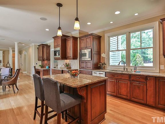 GOLF COURSE VIEWS! Almost an ACRE of landscaped,LEVEL property in Governors Club.Overlooking the Jack Nicklaus Golf Course. Great architecture; efficient floor plan; On-trend,renovated home. Light filled w/ views! Gourmet kitchen. Top appliances. Terrific outdoor spaces. Home office, screened porch, family room, sun room, media, playroom, 1st floor guest suite & exercise room. THREE-car garage. Hardwoods throughout. 12-zone audio system. Close to UNC, Duke, RDU, RTP, shopping, restaurants & medical.