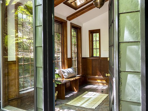 A Tranquil Haven, Reimagined...Tucked in a lush grove above a quiet lane in Pleasant Valley, this thoughtfully updated 1971 rambler is a serene retreat. The 1,140 sq. ft. main home features glowing hardwoods, rich stone countertops, a cozy gas fireplace, and mood lighting throughout. Mini-splits offer efficient comfort year-round.Outside there is an expansive 1,100 sq. ft. cedar deck with a 6-person hot tub nestled under the trees. Wander through meandering trails or retreat to two detached studios: a 275 sq. ft. converted garage with bamboo floors, large windows, skylight, and a pole-barn-style build (unheated), plus a 103 sq. ft. insulated Tuff Shed studio with cork flooring, in-wall heat, sliding glass doors to a small deck and massive windows—ideal for work, art, or quiet reflection.Living, Dining & KitchenOpen, light-filled spaces with seamless flow and nature views. A modern gas fireplace and refined finishes make it warm and welcoming. The updated kitchen features polished stone counters and contemporary cabinetry.Bedrooms & BathTwo peaceful bedrooms and a refreshed bathroom with heated floors and treetop views offer restful simplicity and comfort.Features & Highlights • 2 beds, 1 full bath • 1,140 sq. ft. home + 275 sq. ft. + 103 sq. ft. detached studios • Hardwood floors, stone slab counters, updated kitchen • Heated bathroom floors, reclaimed design details • Expansive 1100 sq. ft. deck w/ hot tub under the trees • New electrical panel, off-street parking • Lush, wooded setting in a quiet neighborhood [Home Energy Score = 7. HES Report at https://rpt.greenbuildingregistry.com/hes/OR10139128]