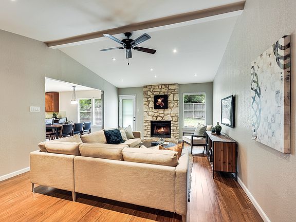 Updated 3 bdrm, 2 bath house on a quiet street. Open living w/fireplace, bamboo floors, no carpet, SS appliances (range w/gas cooktop- natural gas, microwave, dishwasher), double sink vanity, his/her walk-in closets, deck, updated baths, fenced in backyard, 2-car garage, washer/dryer hookups only. Refrigerator, washer & dryer NOT INCLUDED. Available immediately. $50 application fee per each person 18 or over. $300 pet deposit. Only cats or small dogs allowed.