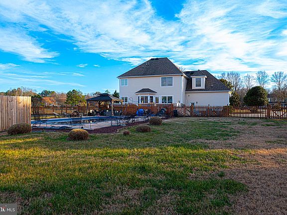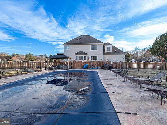 Stunning, spacious Georgian-style home located just 10 minutes from the Ocean City, Delaware beaches and Historic Berlin. Enjoy peaceful rural living while relaxing by your inground pool, all set within a fully fenced one-acre yard. The home features a Hardie-Plank exterior and a side-entry garage with two new garage doors. Inside, you’ll find elegant crown molding, decorative raised wall paneling, custom built-in bookshelves, and a beautifully appointed kitchen with granite countertops and stainless steel appliances. A new heat pump installed in 2025 adds modern efficiency. The first-floor office has been converted into a private in-law suite, ideal as a fifth bedroom, complete with an en-suite walk-in bath. Upstairs offers four generously sized bedrooms and two full baths, including a stunning primary bath with a claw-foot soaking tub and custom marble shower. Additional highlights include a low HOA fee of just $200 annually and NO city taxes—making this exceptional property as practical as it is beautiful.