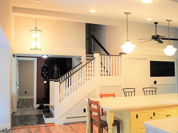Beautiful updated Farm House with wrap around front porch on 30+ acres. Walking into this home you are greeted with a charming stair case. The kitchen has a over sized island, mosaic back-splash, tons of storage, walk-in pantry, cathedral ceilings, with separate dining area. The kitchen and dining area opens to the stunning living room, with original hard wood floors, knotty pine cathedral cut beam ceiling, and a wood burning fireplace. There are 2 first floor bedrooms. First floor laundry. 2 additional bedrooms on the second floor. Unique well pump inside the home that is spring feed. Updates within the past 5 years include roof, well, boiler-zoned, hot-water tank, 6 panel doors, and some windows. Electric is 200 amp. There is a large barn and storage shed. The land has a creek with a waterfall, black raspberry bushes, apple tree, cherry tree, chicken coop. The log home on the property is a one bedroom with a loft and a full basement which is currently rented for $650.00. This would be a great in-law or studio. Do not miss out on this wonderful property. Please see Video of the Main Home.