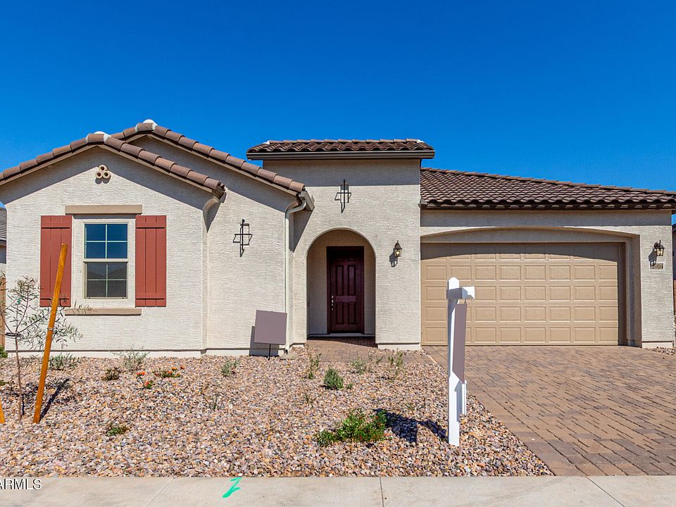 Explore this stunning Celeste home, ready for quick move-in on a homesite boasting driveway pavers and front yard landscaping. Included features: an inviting covered entry with a tray ceiling; a quiet study; a gourmet kitchen offering 42'' cabinets, quartz countertops, stainless-steel appliances, a double oven, a walk-in pantry and a center island; an open dining area; a spacious great room boasting center-meet doors leading onto a relaxing covered patio; a lavish primary suite showcasing a generous walk-in closet and a private bath with cultured marble countertops; a convenient laundry; a mudroom and a 2-car garage. This home also offers stone tile flooring, additional windows and ceiling fan prewiring in select rooms as well as airy 10' ceilings throughout.
