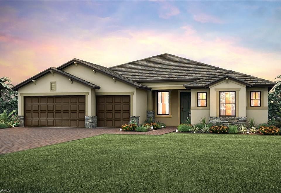 New construction by Pulte Homes in Bridgetown at the Plantation. This 2,488 Sq. Ft. Pinnacle features 3 bedrooms plus a den, 2 baths, built-in Kitchen Aid stainless appliances, 42" white maple kitchen cabinets, granite counter tops throughout, tile on a diagonal in the living areas and baths and zero corner sliding glass doors to lanai with pool and spa on a beautiful water view.