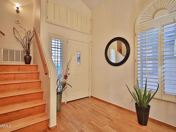 Beautiful home sitting on premium lot in Garden Point community. Two-story just under 1600 square feet with 3 bedrooms, and 2.5 bathrooms. Located across the street from the community pool! The home shows pride in ownership as soon as you walk through the front door to a great room with wood floors throughout and a large fireplace. Shutters on all the down stairs windows. Kitchen upgrades include cabinets and granite countertops. Backyard includes an extended patio that overlooks a landscaped yard. Front yard Landscaping is included in HOA. This home will not last long!