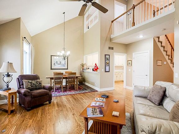 Beautiful maintenance-provided home in the heart of Johnson County! Everything you need is on the main floor. The Great Room features wood floors, soaring ceilings, and a fireplace. The eat-in kitchen offers brand new appliances and opens to the formal dining room. The primary suite is spacious with private access to the bathroom and walk-in closet. The main floor also offers a laundry room and half bathroom. Upstairs you will find a 2nd large bedroom with en-suite bathroom and walk in closet. The home office is just across the hall, and could also be used as 3rd bedroom. The lower level is partially framed with outlets and switches already installed. It could easily be completed to add more finished square footage. The lower level is also stubbed for a full bathroom. You will love the convenience of this location - close to stores, banks, restaurants, and pharmacies. Easy access to 69 Highway and 435. Move right in and never worry about lawn care or snow removal again!