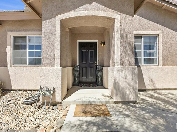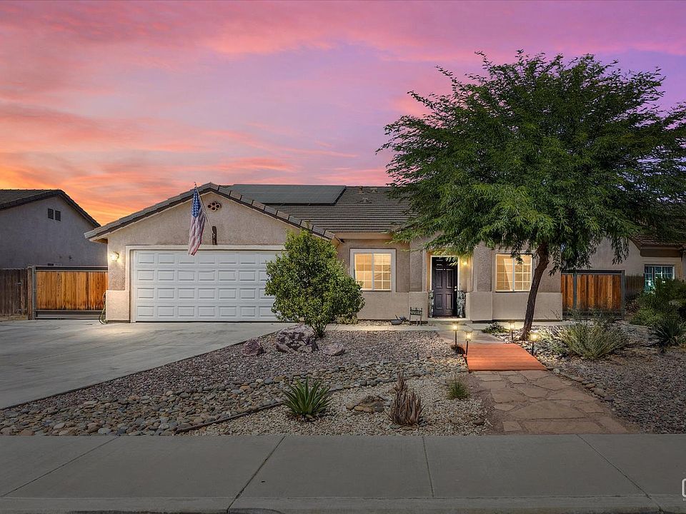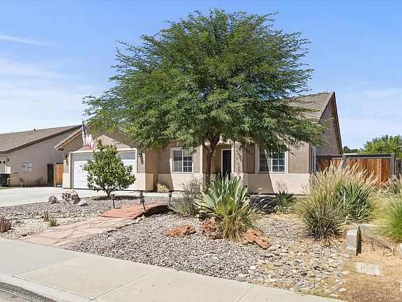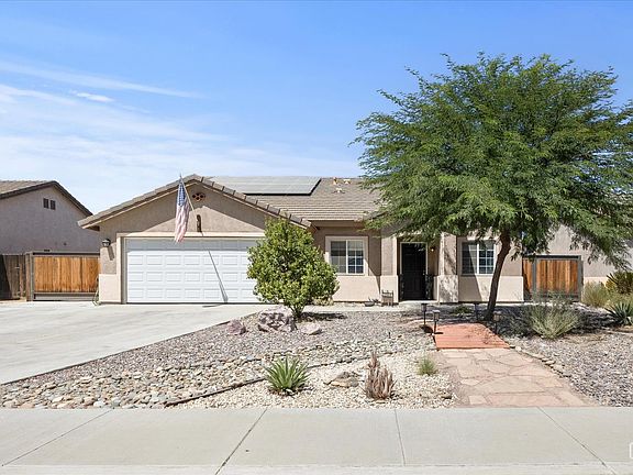 Situation on a generously sized lot, this 4-bedroom, 2-bath home offers over 2,000 sq ft of living with RV parking, a 30-amp hookup, and paid-for solar. Curb appeal shines with drought-resistant landscaping and added concrete for style and function. Inside, the formal living and dining areas feature newer flooring and large windows for natural light. The kitchen provides abundant cabinetry, expansive counter space, and connects seamlessly to the great roomideal for entertaining. Bedrooms are spacious with plush carpet and ample closets, while the primary suite offers dual sinks and generous vanity space. The backyard is perfect for gatherings with extended concrete, a covered patio, grass, and a shed for storage. Enjoy a variety of fruit trees including avocado, peach, nectarine, green fig, and kumquat, plus a mesquite tree for shade and character. Conveniently located near top-rated schools, this home blends comfort, function, and charm. Call today!