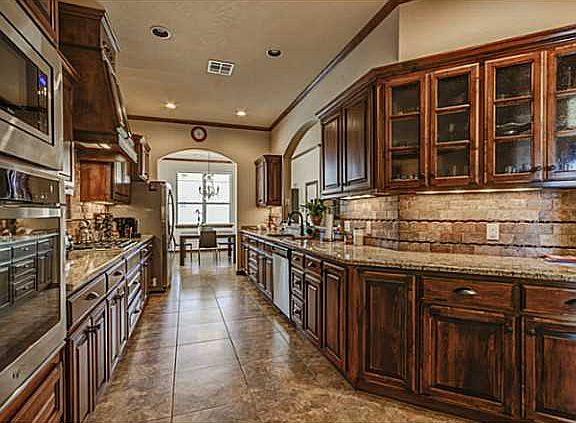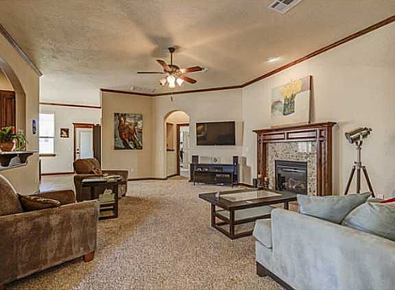 Beautiful Custom Home with all of the extras. Large kitchen with granite counter tops, built-in stainless appliances, under cabinet lighting, and breakfast bar. Master bedroom has two closets with access to large laundry. Master bath has a walk-in shower and large tub. Enjoy the outdoors on the covered back patios. Lovely lawn with sprinkler system. Storm shelter is included in this home. This gated community provides home owner's association front and back yard mowing. Easy access to major highways, turnpike, shopping and dining.