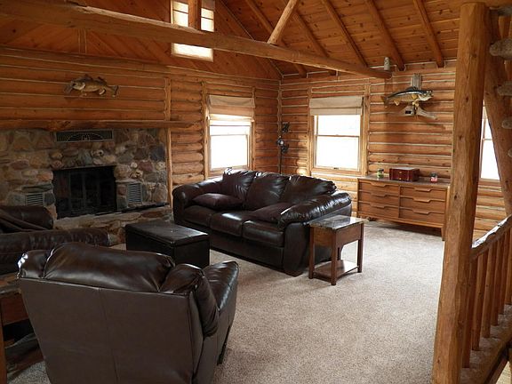 Your Personal Retreat!- Rustic Log Cabin constructed on a 3+ acre lot offering all the tranquility a person could ask for. Neatly tucked away on the back half of the parcel the amenities include mostly all new floor covering, wood burning fireplace, mostly finished basement with walk out patio doors, two car attached garage, vaulted ceilings in living room, 1st floor laundry all complimented by an assortment of wildlife that add to this already peaceful settings. Inc: Stove, REF, MW, Wash & Dryer, Riding LM. Fenced back yard with deck and 2nd shed.