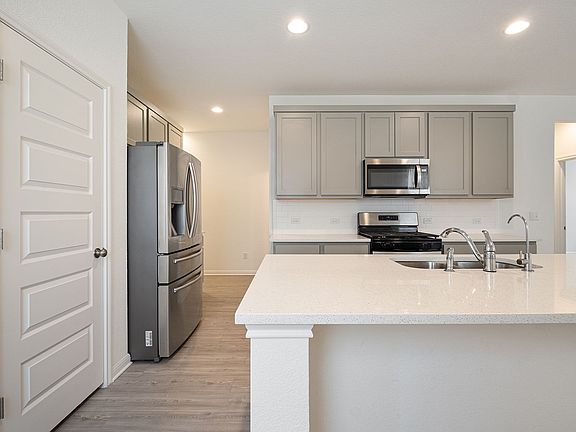 Private backyardRecessed lightingStainless appliancesWasher and dryerQuartz countertopsOpen kitchenCovered patio