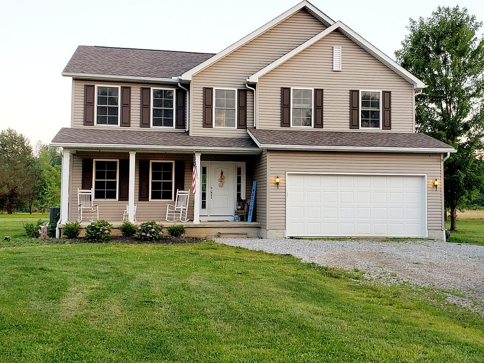 Custom built home on 3 acres w/ mature trees built in '15. Located between New Albany & Johnstown. 2058 sqft w/ open floor plan, SS appliances, master has walk in closet, loft that could be 4th bedroom, & laundry room on main floor. Full unfinished basement w/ poured concrete walls. Reverse osmosis system included. There is a transferable warranty.