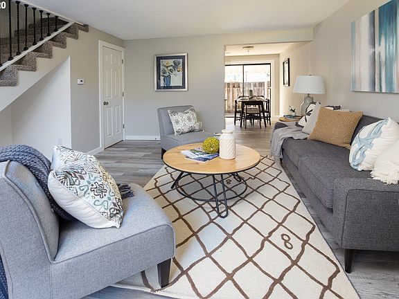 Tastefully remodeled townhouse with detached garage. Brand new kitchen with granite, stainless steel appliances, dishwasher and range. Updated bathrooms, new interior paint, carpet and luxury vinyl flooring. Great room design and powder bath for guests. Upstairs bedrooms with full bath Back yard is fenced with a small patio and room for small garden or outside dining. Washer and dryer hookups in unit. Great location near shopping, transit, restaurants and easy access to 205. No rental cap.