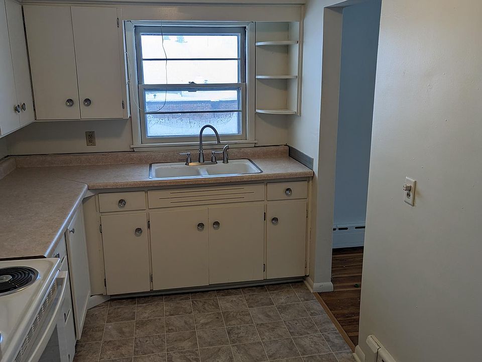 Upper level 1 bedroom 1 bath apartment. Updates in kitchen and bathroom. Shared laundry in building. Centrally located. Tenant pays electric. Renter is responsible for electric.