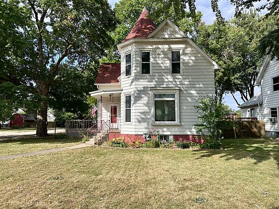 Three bedroom, two bathroom corner lot home! This home offers a nice mix of charm and updates including original woodwork and pocket door in the family room. The main level has a nice sized family room, formal dining room, nice sized kitchen, main floor bedroom, and full bathroom. The second level has two additional bedrooms with the master bedroom having a walk in closet and a second closet. The full bathroom on the second level offers a newer vanity and laundry for added convenience! This home offers a full basement perfect for storage and a new furnace (10/2023). There is a 12x30 deck with plenty of shade for comfort. Home has a two car detached garage and a second building which could be used as another garage or a shed. Other updates include roof (2014), replacement windows, and water heater (5 years old)!