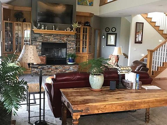 A slice of heaven on the edge of town! This custom home sits on over 3 acres with one of the most beautiful views Minot has to offer! The huge open kitchen and living room with a view and vaulted ceilings will wow you. The stone fireplace and built-ins are a gorgeous feature, as well. The master suite is huge and features a great walk-in closet, walk-in tile shower, and his and hers vanities. Rounding out the main floor are a beautiful half bath and large laundry room with a lot of storage. Upstairs features an office space and a large bedroom with two closets! The walk-out basement is awesome! There are two big bedrooms, a nice-sized family room, an additional full bath, and a HUGE storage room that has the ability to be turned into an additional bedroom and bathroom. This place is a must-see!! It has the perks of city and country life being just one minute south of the YMCA.
