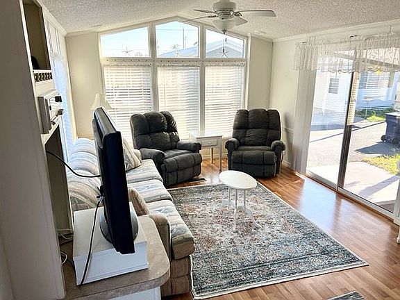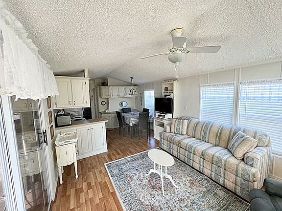 Lovely, meticulous light and bright one bedroom mobile home with additional solid room that has a twin sleep sofa. There is a large open living room with a queen size sleep sofa. Beautiful bathroom with walk in shower. Easy maintenance with vinyl siding. Home is in a nice park close to shopping and beaches. Electric water heater. Central AC and heat. Stackable washer and dryer. Fully furnished. Low fee. Park offers community gathering room and fitness center. $5000 Palmetto Club member fee that is returned upon sale.