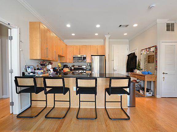 This stylish 2-bedroom, 2-bathroom condo offers 1007 sqft of modern living space, complete with a dedicated parking spot. Situated in a well-maintained elevator building, this sunlit, west facing unit features an open-concept layout with hardwood floors, large windows, and high ceilings. The sleek kitchen is equipped with stainless steel appliances, granite countertops, and ample cabinetry, flowing seamlessly into the spacious living and dining area perfect for entertaining. The primary suite includes a private ensuite bath, while the second bedroom is generously sized with easy access to the second full bathroom. Additional highlights include in-unit laundry, central A/C, and a prime location near parks, shops, dining, and easy NYC transportation. Move in 7/1/25. No Pets Tenant is responsible for PSE&G and wifi. Landlord pays for water, sewer, trash, and parking/amenites. Tenant is responsible for Move in fees. Move in 7/1/25
