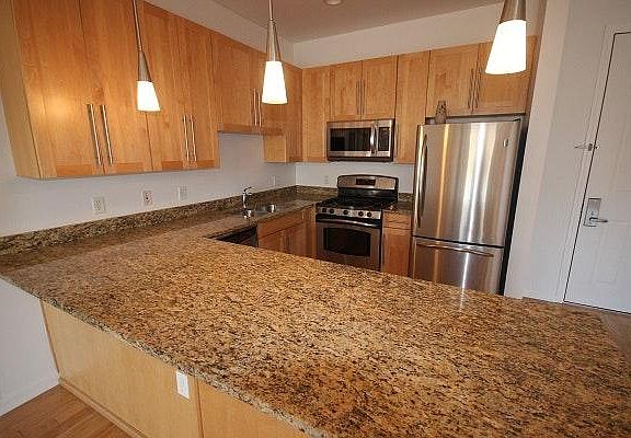 Light bright 2 bedroom 2 bath with private entrance and parking in The Upper Grand. Kitchen has maple cabinets, granite counters with breakfast bar, stainless steel appliances. Open living space. Master bedroom w/en suite bathroom and walk-in closet. Hardwood floors, central heat and air, ceiling fans, washer/dryer in unit. Steel and concrete construction, elevator, gym, landscaped common courtyard, and community room. Indoor garage parking space. One year lease. Available Dec. 1st. Credit check required. NO pets, NO smoking. Offered by licensed real estate broker. Tenant pays one month rental fee.
