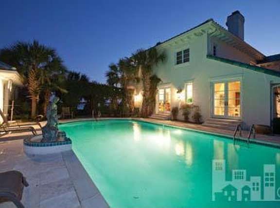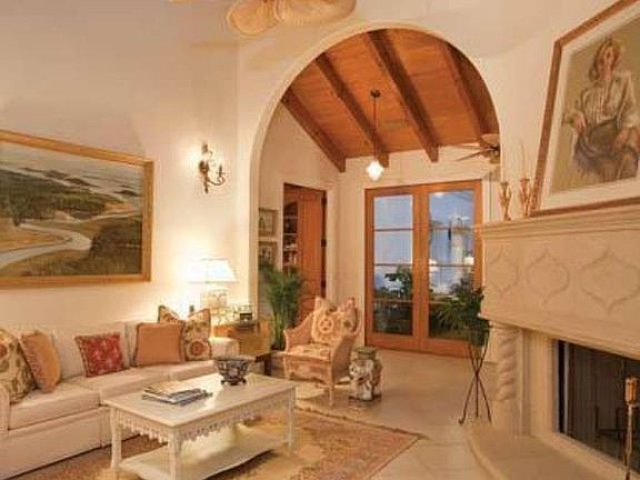 This is a magnificent Mediterranean style home overlooking the Intracoastal Waterway on historic Airlie Road. An extremely well constructed 5 bedroom, 4/2 bath with 3 car garage which one can be used for boat or RV storage. 2 master suites with upstairs master having its own sitting room overlooking the ICW. Elevator to all floors. A first floor office/library leads to the solarium and the kitchen/keeping/breakfast area which overlooks the large heated in-ground pool and cabana. This is a home European in design with open spaces offering the buyer the choice of casual or formal living. Community marina with desiginated 40' boat slip. Sold As Is.