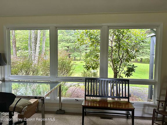 PRIVATE, PEACEFUL AND SERENE PROPERTY NESTLED ON 2 ACRES IN GARDINER! This three bedroom, two bath contemporary ranch home is situated back off the road and provides an ideal retreat where you can enjoy all that nature has to offer. The floor to ceiling wall of windows in the front of the home and triple slider in the back of the home provide a panoramic view of lush greenery, perennial gardens and mature trees. The open concept living area with vaulted ceilings features a living room, dining area, sitting area and eat in kitchen. The primary bedroom with vaulted ceilings, offers a walk in closet and a large primary bath with a walk in shower. The hall bath has been updated with Corian counters, newer cabinets, jetted tub and tiled shower. The laundry area with newer washer/dryer is located on the main level right outside the bedrooms. There is a mini split in the main living area as well as the primary bedroom to provide year round heating and cooling. Outdoors you can enjoy a morning cup of coffee on the slate patio area on the side of the home or an evening meal on the large back deck overlooking your private oasis. The detached one car garage has been recently updated with a metal roof, new garage door and remote opener. This property is minutes from the Town of Gardiner with shops, restaurants, town park, library and Wallkill Valley Rail Trail. The Shawangunk Mountains frame this quaint town and bestow mountain vistas, historic trails, rock climbing and skydiving. It's centrally located to commuter roads, 75 min to NYC, convenient to Stewart International Airport, Metro North Train, Mohonk Mountain, Minnewaska State Park and the Wildflower Farms Auberge Resort.