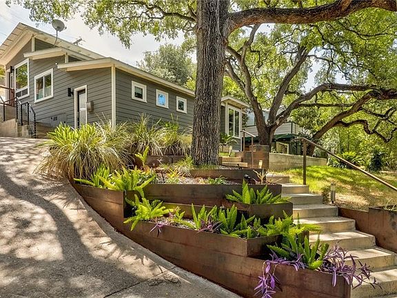Views; North end of Travis Heights; Hillside cottage with artistic and nicely done extensive retaining walls and landscaping; Sprinkler system; Covered deck; Paint inside/out; Wood floors; Remodeled kitchen, bathroom, and utility room; 3rd bedroom could easily be nursery, craftroom, studio, office or 2nd living room; Recent metal roof, a/c, waterheater, windows. Now you can enjoy a great neighborhood and move-in ready home at a great price. Neighborhood Description One of Austins oldest and most eclectic neighborhoods sits right in the heart of the city across the river from downtown. Low crime, a strong community, and one of the largest urban oak stands in the world are unique characteristics of the area. Easy access to local food, shopping, and staples make living here a blessing.