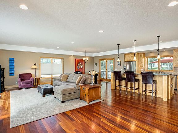 Embrace views of Sweeney Lake from the comfort of your home. Sprawling open concept layout with sunrise views over the Lake and Minneapolis skyline. Complete remodel in 2008 with high-end materials and quality craftsmanship. Meticulously maintained and further improved by impeccable owners. Large living room, dining, and kitchen with Brazilian cherry floors and Maple cabinets. Dining opens to your backyard oasis with professionally landscaped patio and fenced yard. The backyard quickly becomes an extension of the home. Desirable three bedrooms and two baths on the main floor, including primary en suite. Lower level family room, guest bedroom, bath and laundry. Marvin windows/patio doors. Hardie Board siding. Deck '23. Roof/gutters/h2o heater '22. In-ground sprinkler. Garage so clean you can eat off the floor. Deeded access to the lake for water activities. Convenient to Luce Line and Theo Wirth trails. Welcome home to a serene setting, coupled with modern amenities and stunning views.