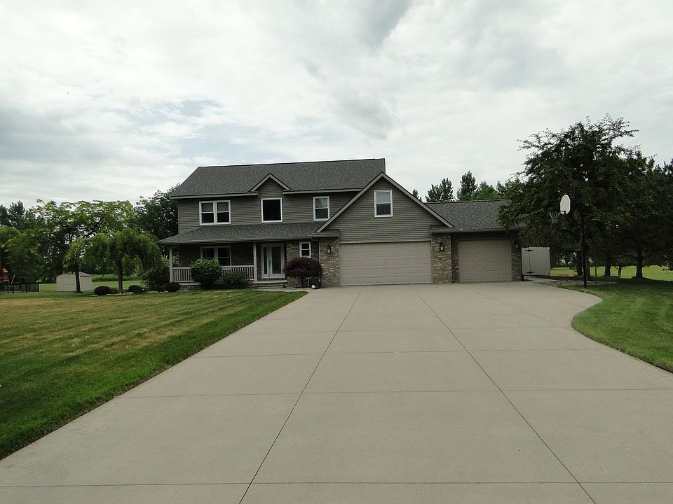 Beautiful Setting on 2.13 acres.Enter onto Porcelain tile & view Beautiful staircase,family room plus great room design living,dining,& kitchen with newer granite counters,maple cabinets & patio door leading to a large cement patio and a heated In ground swimming pool.Master suite with jet tub, walk-in closet,3 other bedrooms plus carpeted Bonus room above the 3+ garage, Basement just needs carpeting to add another level of living space.An additional cedar line driveway to 30 x 40 outbuilding!