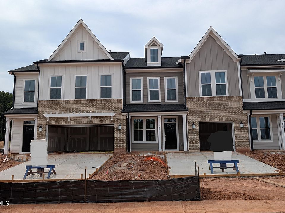 Experience elevated living at Ovation at Sweetbrier, a 55+ active adult community in Durham where thoughtful design and vibrant lifestyle come together. This end-unit townhome stands out with added windows for enhanced natural light and the privacy of a corner location—perfect for those who value peace, quiet, and a little extra sunshine. Inside, a spacious open-concept layout welcomes you with high ceilings and a bright, airy feel. The kitchen and great room flow seamlessly for easy entertaining and everyday comfort. Luxury vinyl plank flooring adds warmth and durability throughout the main level. The chef-inspired gourmet kitchen is equipped with quartz countertops, a large center island, and stainless steel appliances—including a gas cooktop, built-in microwave, and wall oven—making both cooking and hosting a pleasure. The main-floor primary suite is a private retreat, featuring a large walk-in closet and a beautifully tiled walk-in shower with double vanity. From the great room, step out to your covered rear porch, a cozy outdoor space perfect for quiet mornings, relaxing afternoons, or evening gatherings—rain or shine. Upstairs, you'll find a flexible loft space, two guest bedrooms, a full bath, and a spacious walk-in storage room to keep everything organized without sacrificing living space. Enjoy the convenience of low-maintenance living, where exterior upkeep is handled for you—giving you more freedom to enjoy travel, hobbies, or simply unwinding. Live life your way at Ovation at Sweetbrier, with access to future resort-style amenities including a clubhouse, pool, hot tub, fitness center, pickleball courts, dog park, outdoor chess park, and scenic walking trails.
