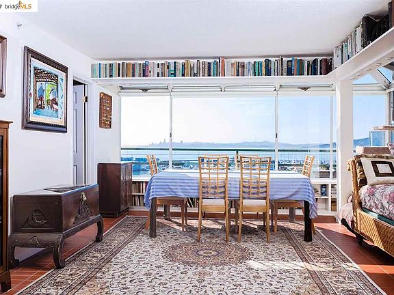 The views from this third floor back building corner Brickyard Landing condo are spectacular. The HUGE (15' x 15') solarium has two walls of glass with a view that spans from Oakland, past the Bay Bridge, across San Francisco, and on to Angel Island. Want a more rural vista? Then look out the side windows and watch the deer and turkeys on the East Bay Park hillside. 3 bedrooms, 2 full baths, and eat-in kitchen with granite counters. There's even a small deck. Located at the end of the building provides added light and privacy. Washer and dryer in the condo. 2 parking spaces in the same building and FOUR storage lockers!