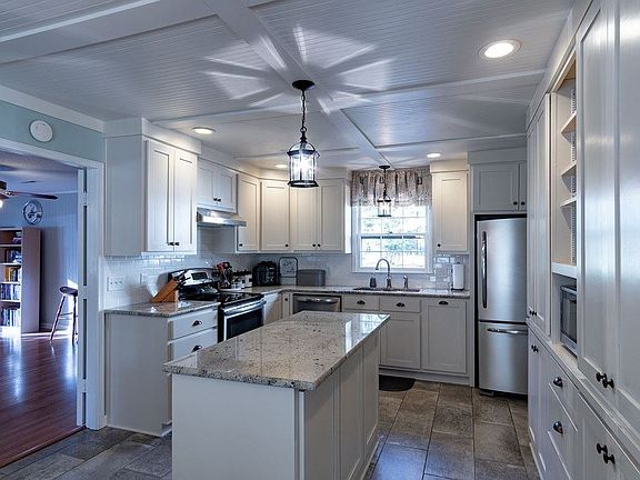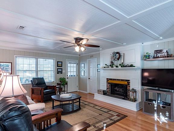 Cute 3 bedroom, 2 full bathroom, move-in ready home sitting on a nice 6 acres! You are welcomed by the spacious living room area featuring a cozy natural gas fireplace and stunning mantle. The gorgeous kitchen is stocked with beautiful custom cabinets, a kitchen island, a pantry, appliances, and tongue and groove ceilings! The home features nice wood flooring throughout! The large family room is the perfect spot for entertaining guest! This home features plenty of storage with the master including a walk-in closet! Relax and enjoy the outdoors from within in the sun room! Enjoy the fresh breeze from the covered front porch or back patio! Outdoors features a 2 car detached garage and more!