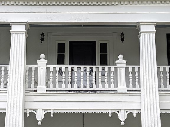 Back on market through no fault of seller. Now is YOUR chance! 1906 4 BR Neoclassical Greek Revival, fully restored in pristine condition, rare wooden exterior, on 11.38 acres with apartment style cottage (792 sq.ft), rented through May 2024, metal 6 stall barn w./tack room, fenced pasture, 3 paddocks. 3 car garage was converted into an office and then into a guest house with kitchen/den combination, full bath, laundry/walk in closet and BR. Owner built horse barn - 6 stalls, tack room, 36 x 48. Pasture is fenced and approx 9 ac of the property in pasture. Modern kitchen, baths, freshly painted, Detailed molding on front balcony beneath the lovely balustrade. Diagonal tongue and groove woodwork on the facade is rare and lovely. Ceiling are 14 ' downstairs and 12' upstairs. The kitchen has white quartz counters, with room for a table and lovely sun room style den area combination. Heart pine floors are in excellent condition and the main hall upstairs is wide enough for two additional sitting areas. The conveniently placed concrete patio has two sitting areas and separates the home from the guest cottage. A picket fence keeps the pets safe and adds additional appeal. Owners have boarded horses for others at times. Sq.footage noted on main listing information is only that of the main house. VYVE Broadband is the broadband internet provider. Seller is retired real estate broker. Must have min. of 2 wks to vacate post closing. Move in ready! Don't miss this rare opportunity!
