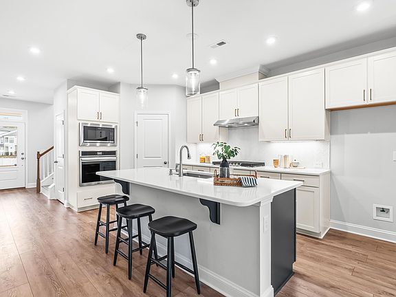 Like New, but Better! This bright and spacious end-unit townhome is filled with natural light and is finished with numerous upgrades. The kitchen is a chef's dream with a large, gorgeous quartz isand, custom pendant lights, a deluxe walk-in pantry, upgraded Frigidaire Gallery appliances, stylish tile backsplash, and under-cabinet lighting. The open-concept design seamlessly connects the kitchen to the main living area, making it perfect for entertaining or simply relaxing while enjoying views of the private rear yard through expansive picture-frame windows which create a warm and inviting atmosphere throughout. Retreat to the luxurious Owner's Suite, complete with a sleek en suite bath, a generous walk-in closet, and an oversized primary shower. Spacious secondary bedrooms offer plenty of room for personalization, while the open loft retreat provides flexibility as an office, media room, reading nook, or study space. The tandem two-car garage is wired for an EV charger, adding modern convenience. Ideally located near Southpoint Mall, I-40, RDU, RTP, Raleigh, Durham, Chapel Hill, etc., this home is just minutes from top restaurants, retail, and grocery stores. Designed for comfort and style in a prime location, this Move-In Ready townhome offers endless rewards and possibilities!