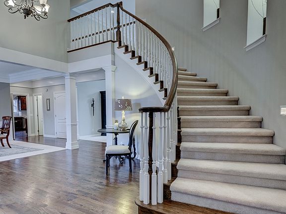 Gorgeous home with many extra features and unfinished walkout basement in Oak Pointe! Incredible entry, curved staircase, crown molding, hardwoods, formal dining room opens to elegant great room with beautiful gas fireplace, built-ins, many windows, French doors lead to deck, amazing kitchen has island, bar seating, double ovens, gas range, large pantry hides microwave, breakfast area opens to hearth room, attractive gas fireplace, private office / study, breathtaking master suite has sitting area, jetted tub, separate shower, double sinks, great walk-in closet, each bedroom upstairs has full private bath and walk-in closet, easy access stairs to attic, full unfinished walkout basement has space for wet bar, full bath, & bedroom, extra storage, circle drive, 4 car attached gar, stunning!