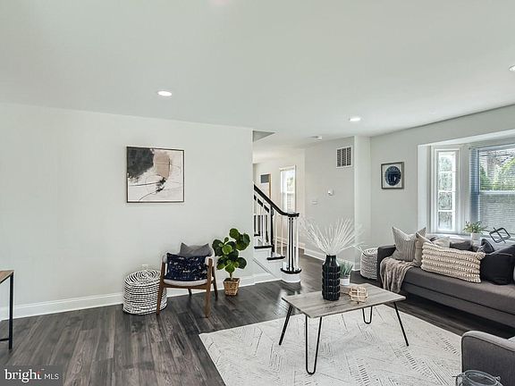 Beautifully updated 3BR/2BA End of Group row home located in the desirable Idlewood neighborhood! Walk up to the front porch and open the door into your forever home. Once inside you can't help notice the stunning LVT flooring that continues throughout the main floor of the home. Step into a bright and airy living room beaming with natural light. The open concept dining room and kitchen make for the ideal entertainment space. The new kitchen features quartz countertops. plenty of 42' white shaker, soft close cabinets, stainless steel appliances, and a island with seating. Take the stairs to the second floor to find a large primary bedroom, two sizable secondary bedrooms, and a full bath with beautiful luxury tile. The lower level is finished and newly carpeted featuring a large room ideal as a family room, a full bath with a walk in shower and a walk out to the rear yard. From the kitchen step out to the rear yard with a deck, fully fenced yard and a area that can be used as a parking pad . This home is move-in ready and has so much to offer new homeowners including, a freshly painted interior, new carpet, floors, new water tank, new windows, and a new roof! Conveniently located near Morgan State University, Towson University, JHU, Downtown Baltimore, and all local highways.