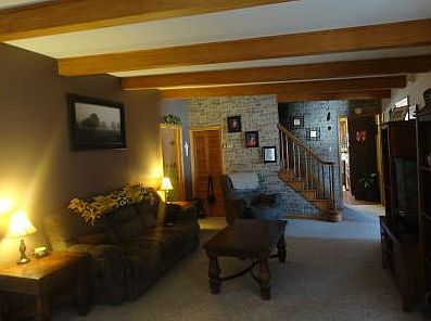 Well built 4 bed, 2 full bath home with lake views. Home has a large kitchen with dinette, living room with timber accents and master bedroom with office/study/bath. There is a front entryway and two back entryways. Lots of room for storage. Rare poured concrete full basement, 200 amp. electrical service, forced air gas furnace, new wood burner, vinyl windows, vinyl siding and covered patio. Detached garage. Walking distance to the lake for you and your family. Rib Lake is 320 acres in size. Anglers can expect to catch a variety of fish including bluegill, largemouth bass, muskellunge, northern pike and walleye.