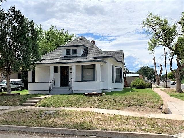 Adorable 3 Bedroom ranch bungalow located on Pueblo's South-side. Home is much larger than it looks. Nice large comfy living room with wood flooring. Good sized separate dining area with wood flooring also. Newer paint! Attic located upstairs (stairs in closet of 3rd bedroom one- middle room with the wood flooring). Partial basement offers tons of storage space and freezer in basement will stay. Mudroom/Laundry room located right off the kitchen and covered wood deck from back yard. Large covered front porch to sit out and enjoy your morning coffee or relax in the evening!. Corner Lot. 1 Car detached Garage with a 1 car carport & storage shed also has access to the alley. Automatic sprinkler system in place but would need some work from new owner. Come check out this home before its gone!