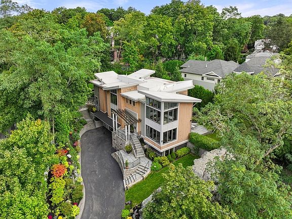 Welcome to this stunning 5+ bedroom, 5.5 bathroom home nestled in desirable West Newton, which blends classic elegance with modern amenities and many upgrades to enhance your luxury experience. Upon entering you are greeted by spacious living and dining areas surrounded by beautiful windows and doors filling the area with natural light and views of the mature landscaping and natural stone walls. The modern gourmet kitchen includes Gaggenau appliances and an island that is stunning in size and function. This floor also has an ensuite bedroom currently used as an office. The large upstairs primary master suite is filled with light and color seeping in from the outdoor windows and deck making it your private oasis. The lower level includes an additional small kitchen, gym (which can be a bedroom), full bath, large entertainment room, and 2-car garage. This home is graced by the beauty of multiple outdoor patio spaces, perfect for family gatherings, cook outs, and solitude when needed.