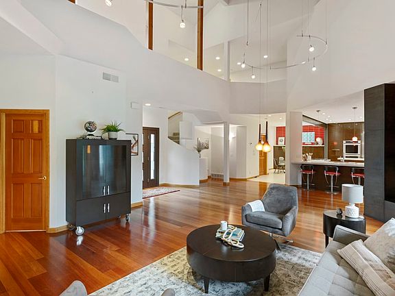 This beautiful, completely updated home features 28 foot ceilings and large windows and sits on one of the best lots in Ranch Place. The spacious backyard, adjacent to open space and trails, has a large covered patio and outdoor fire pit. The main level has a guest suite, media room, great room, oversized kitchen, and laundry room. The second level has a home office with balcony, a master suite with balcony and three additional bedrooms. Home has radiant heat, hardwood flooring, central air.