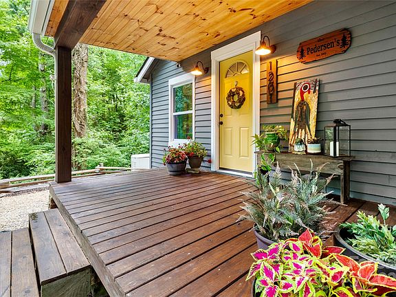Beautiful oak floors throughout—modern kitchen amenities with granite countertops and direct access to a lovely private deck. Every room has a relaxed feel. As you move outside, there is a large covered front porch to sit and enjoy all the sounds of nature. From the private deck, take a landscaped path to a secret outdoor entertaining spot. Enjoy the firepit year-round. This home boasts privacy and peaceful beauty. It is located a 2.8-mile scenic drive from the township of Laurel Park and 4.5 miles from downtown Hendersonville. Short-term rentals are allowed. This home comes with a home generator. There is a nice outdoor, unattached shed that matches the home next to the deck. Schedule a showing today, discover its charm, and explore the natural setting.