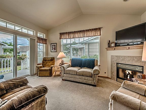 Nice single level condo in Cedar Point, a desirable 55+ Development just beyond The Cedars-has 2 BR, 1.75 baths, 1240 SF & a 2 car attached garage, which is fully finished & painted. Vaulted ceilings, spacious kitchen w/eating bar, all appl. stay. Corner gas fireplace in living room, master bath w/double sinks, double seated lg shower & walk-in closet. Slider to covered Trex deck. Monthly dues are only $190 which includes all exterior maintenance, yard care & lovely club house.