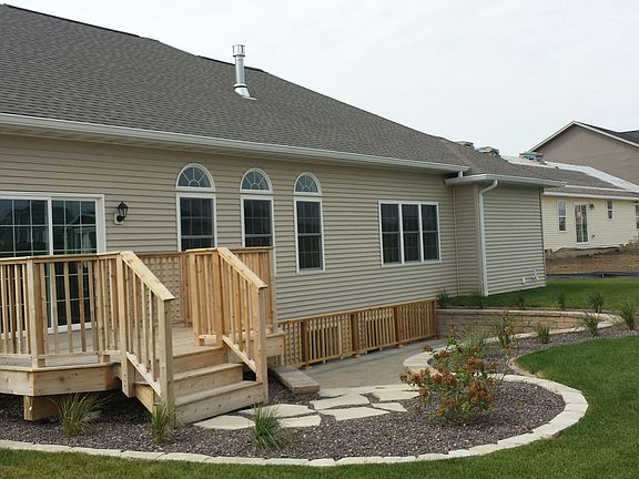 Beautiful new quality built ranch with many impressive features. Professionally landscaped. Maple wood flooring in great room, dining room and kitchen. Designer kitchen with island. Under cabinet lighting. Stone fireplace in great room. Sliding glass door to deck and sunken patio. Jack-n-Jill bath. Finished basement with spacious family room, 4th bedroom and bath. 3/4" plywood on roof and sub floor. Home was built on existing foundation with new footing tile and insulation.