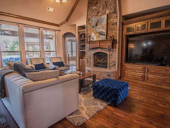 Gorgeous One Story BAILEE CUSTOM HOME, in NORTHWEST ISD. From the moment you walk in you will think you have stepped into a model home. You will adore the EXTENDED HARDWOOD FLOORS and BEAUTIFUL FIXTURES THROUGHOUT. The Kitchen is an absolute Chef's Dream for any cook, with plenty of cabinetry, workspace and a nice pantry, that is open to the family room and is perfect for entertaining. The breakfast nook features windows overlooking the OUTDOOR OASIS featuring an outdoor kitchen, three pergolas, just to name a few of the perfect summer necessities. The second living area can easily be a 5th bedroom, but currently IS being used as a MEDIA ROOM. The Master Suite is an absolute dream. SCHEDULE YOUR PRIVATE SHOWING