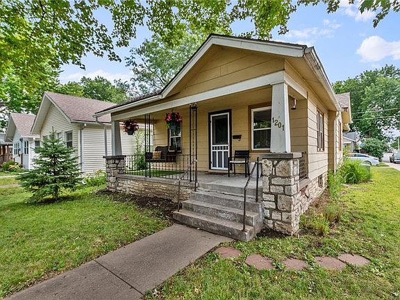 Enjoy North Kansas City living in this corner lot bungalow with a newly updated Kitchen AND Bath. This two-bedroom home with office/workspace/studio in the basement is full of upgrades, including HVAC, water heater, electrical (new panel & surge protector), plumbing, and design. From the covered front porch to the double doors to the back deck, this home provides convenient daily life and is an entertainer's dream. Exquisite trim, quality wainscoting, beautiful wood floors, and abundant light in the living/dining combo open into the galley kitchen, ideal for prepping, cooking, and serving. Kitchen upgrades include cabinetry, backsplash, countertops, appliances, and a vent hood. Use the bonus space as a mudroom, breakfast room, or office. The new homeowners will LOVE the redesigned bathroom offering upgrades galore. You will feel the quality in this fresh and quaint NKC home, complete with a detached garage. Notice the Sellers' attention to detail in design selections. Additional living space in the basement! North Kansas City residents enjoy twice-a-week trash pickup, once-a-month bulky item pickup, weekly curbside recycling, FREE LinkCity internet, Fall leaf pick up, frequent street cleaning, festivals, and concerts. This location offers incredible walkability to the park, rec center, mini grocery, breweries, restaurants, coffee shops, and library. The convenient location is 5 minutes to downtown Kansas City, 5 minutes to the new KC Current Soccer Stadium, and 15 minutes from the new KCI airport. For the new owners' convenience, the appliances stay!