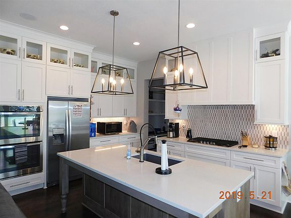 It's all here in this beautiful 2 year old home. Walk in foyer to open and spacious living room, kitchen, and dining room. Beautiful modern design and decor with upgrades in lighting fixtures, built ins, and quality in every detail. Wonderful family style kitchen furnished with stainless steel appliances. So many cabinets, and lighting detail. Walk in pantry. Master suite with the ultimate private bath that has his and her vanities, walk in shower with double heads, and huge walk in closet with access to laundry room. Additional main floor bedroom, 2nd bath. There is a pretty 1/2 bath and upstairs the bonus 3rd bedroom. The full finished view out basement has 2 bedrooms with 2 bathrooms. The family room has wet bar and perfect space for entertaining. Glass doors to wine cellar. Barn doors to bonus craft room/workout room. Cute under the stairs playhouse. The 3 car garage is fully insulated and finished. The ultimate man cave with bar, builtins, and heat and air unit.